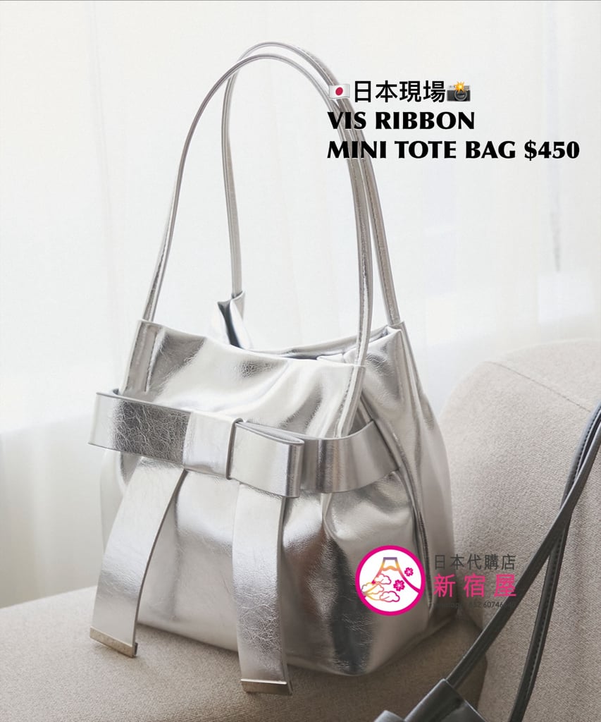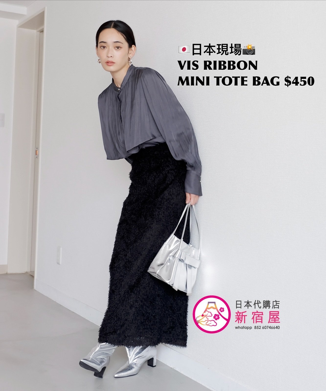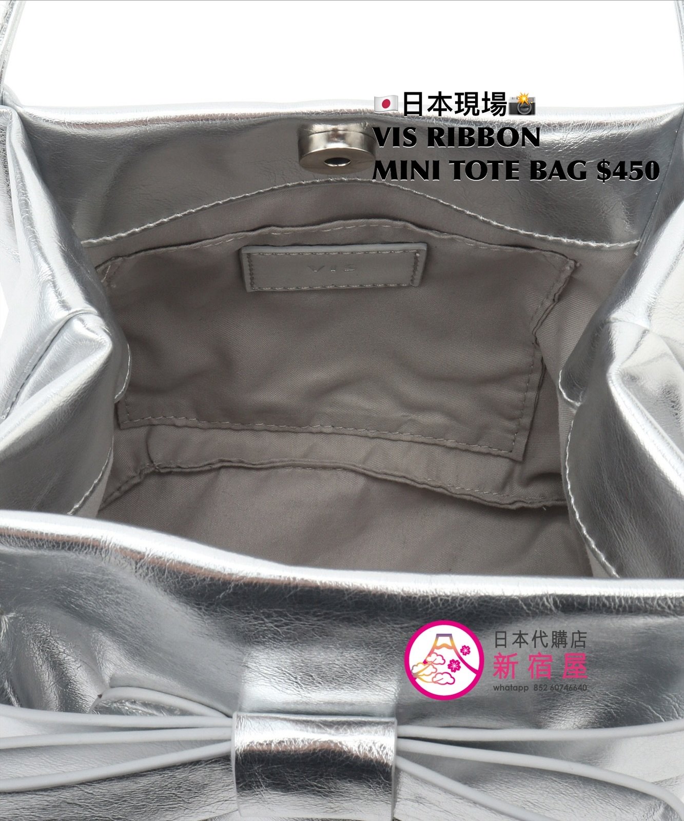 VIS RIBBON MINI TOTE BAG 19x13x19.5cm,BLACK/ SILVER,$450