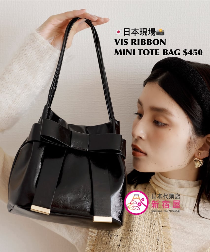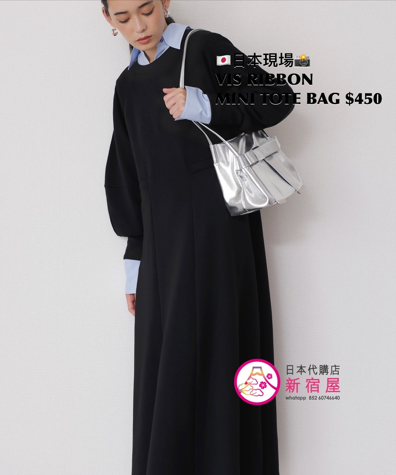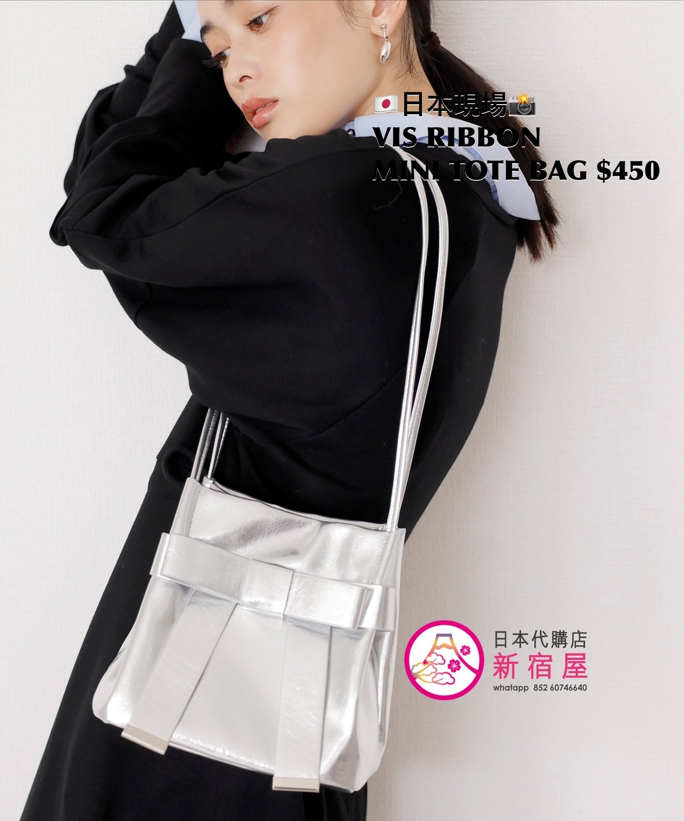 VIS RIBBON MINI TOTE BAG 19x13x19.5cm,BLACK/ SILVER,$450