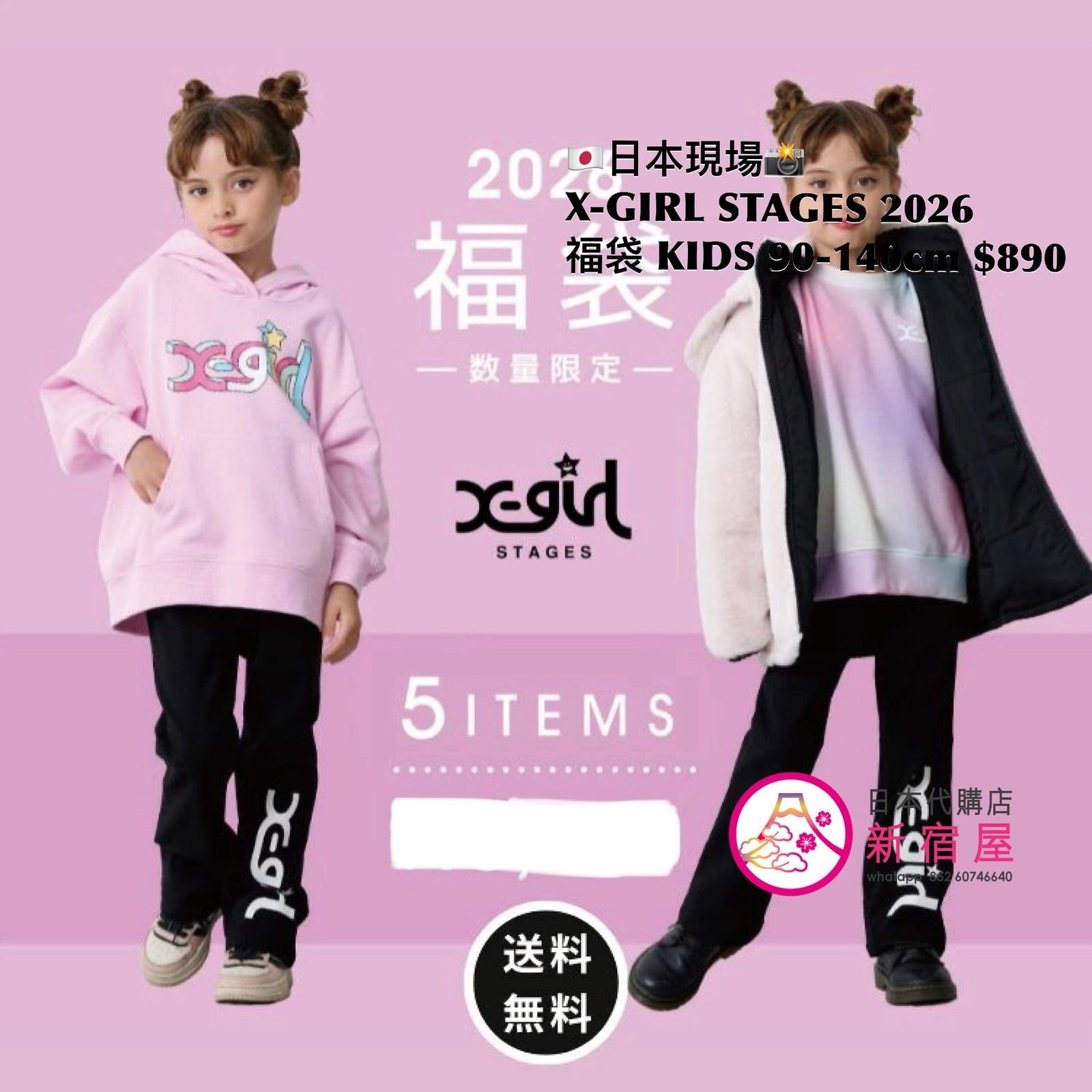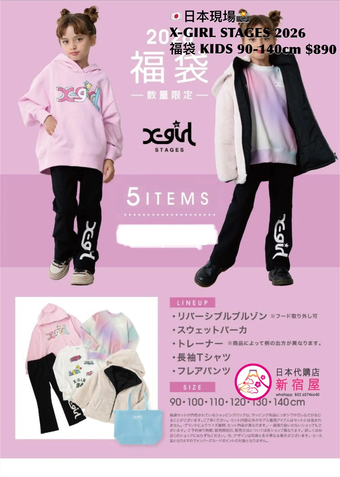 X-GIRL STAGES 福袋 HAPPY BAG 2026 GIRLS 90/100/110/120/130/140cm,6 ITEMS,商品如圖,$890