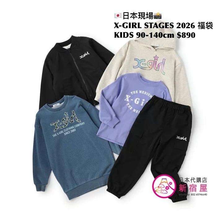 X-GIRL STAGES 福袋 HAPPY BAG 2026 價格已包括國際及本地運費,可選到順豐站或智能櫃取件 GIRLS 90/100/110/120/130/140cm,$890