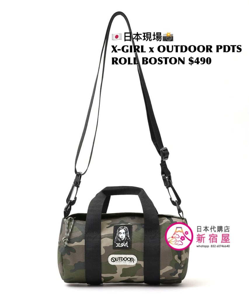 X-GIRL x OUTDOOR PRODUCTS ROLL BOSTON 22.5x13x13cm,BLACK/ CAMO,$490