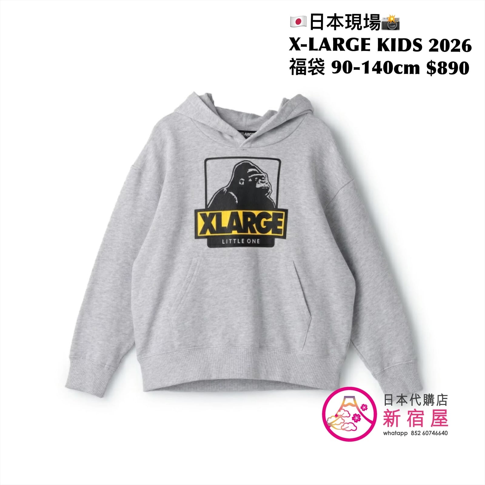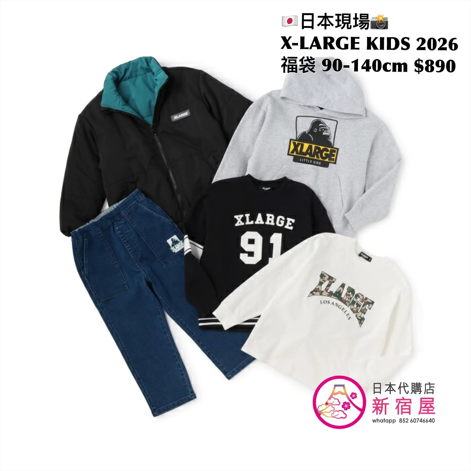 X-LARGE KIDS 福袋 HAPPY BAG 2026 價格已包括國際及本地運費,可選到順豐站或智能櫃取件 完全數量限定,5 ITEMS,商品如圖,90-140cm,$890
