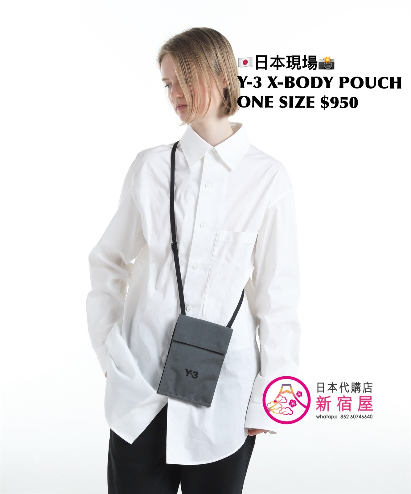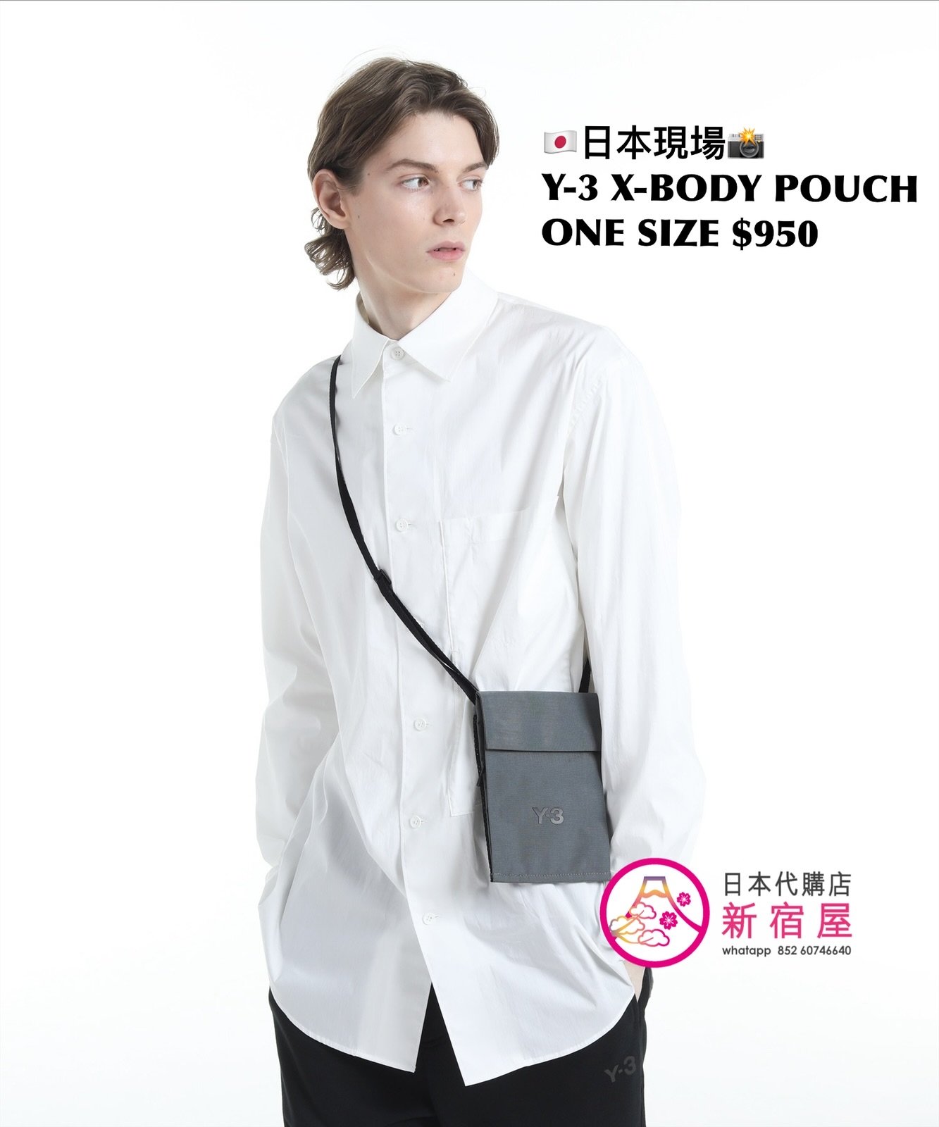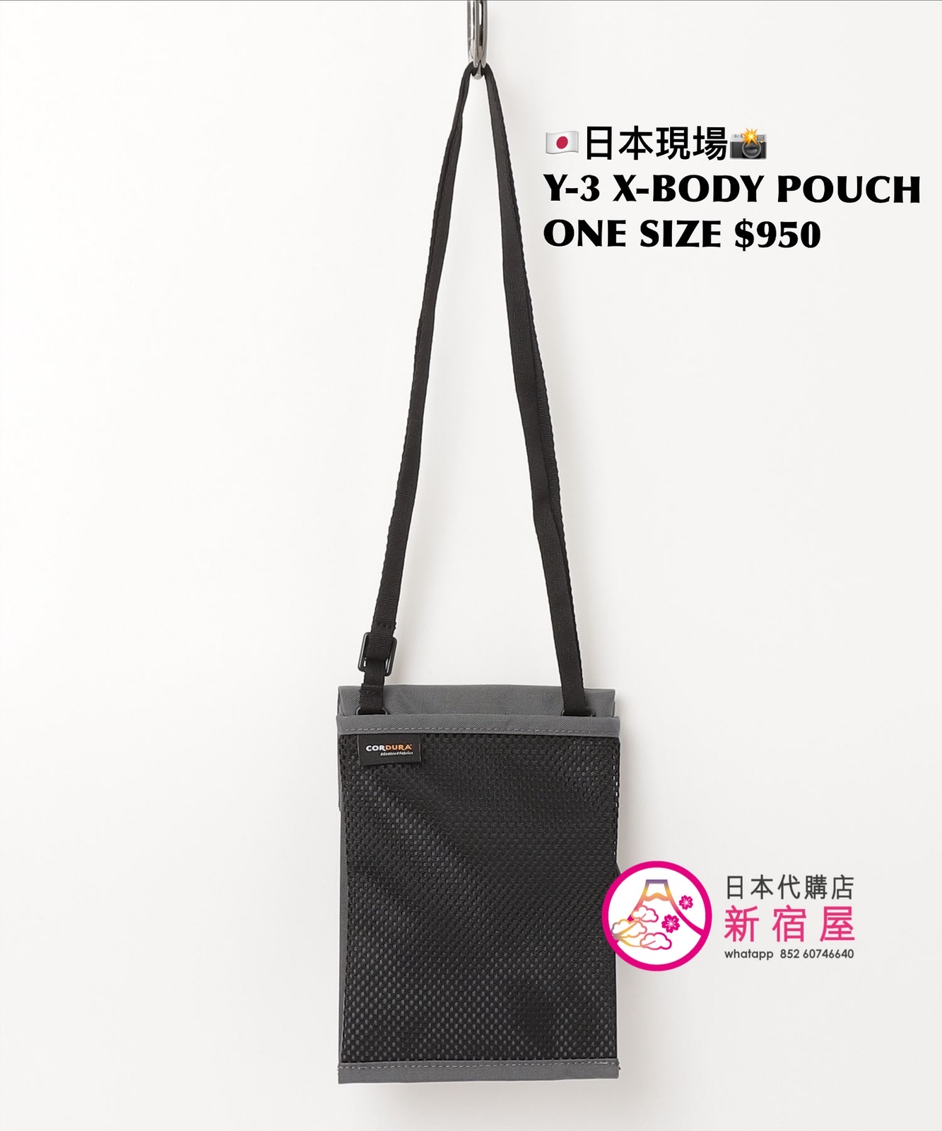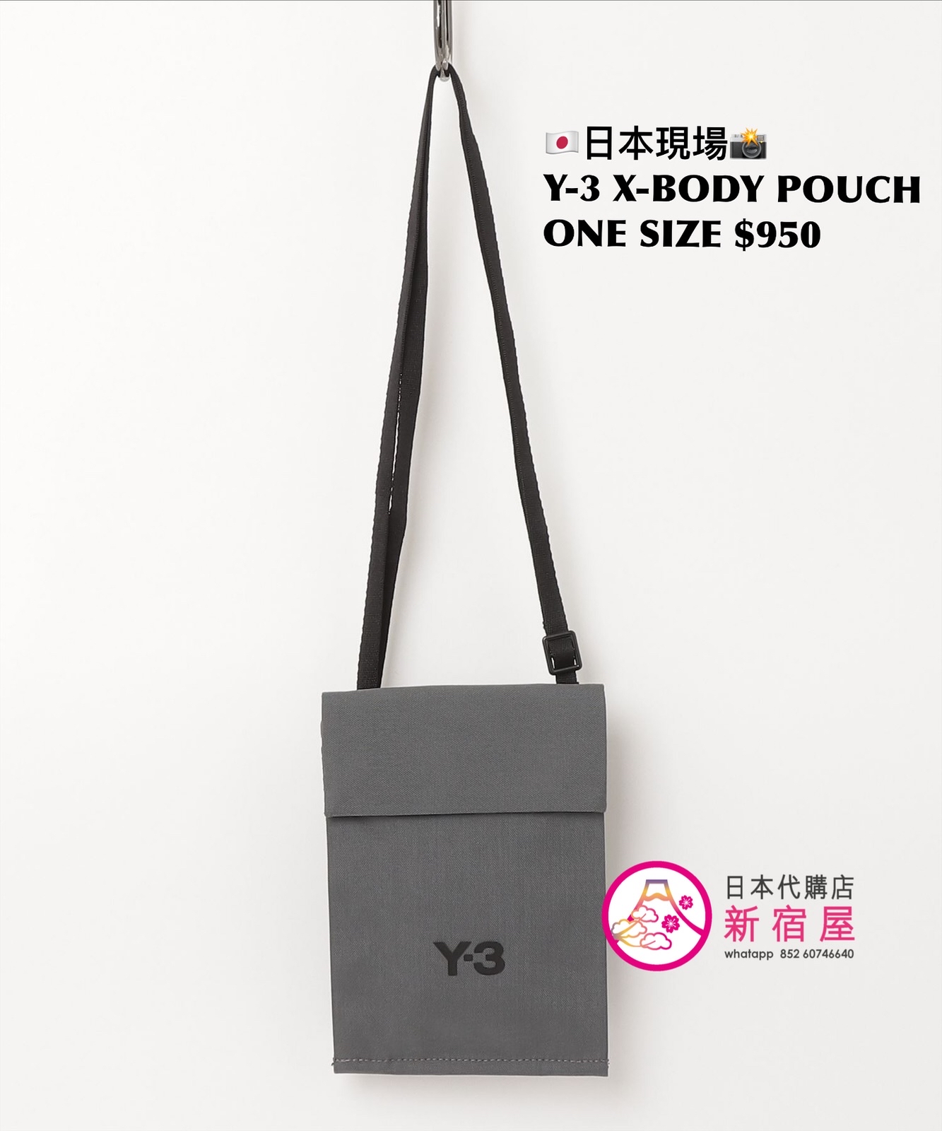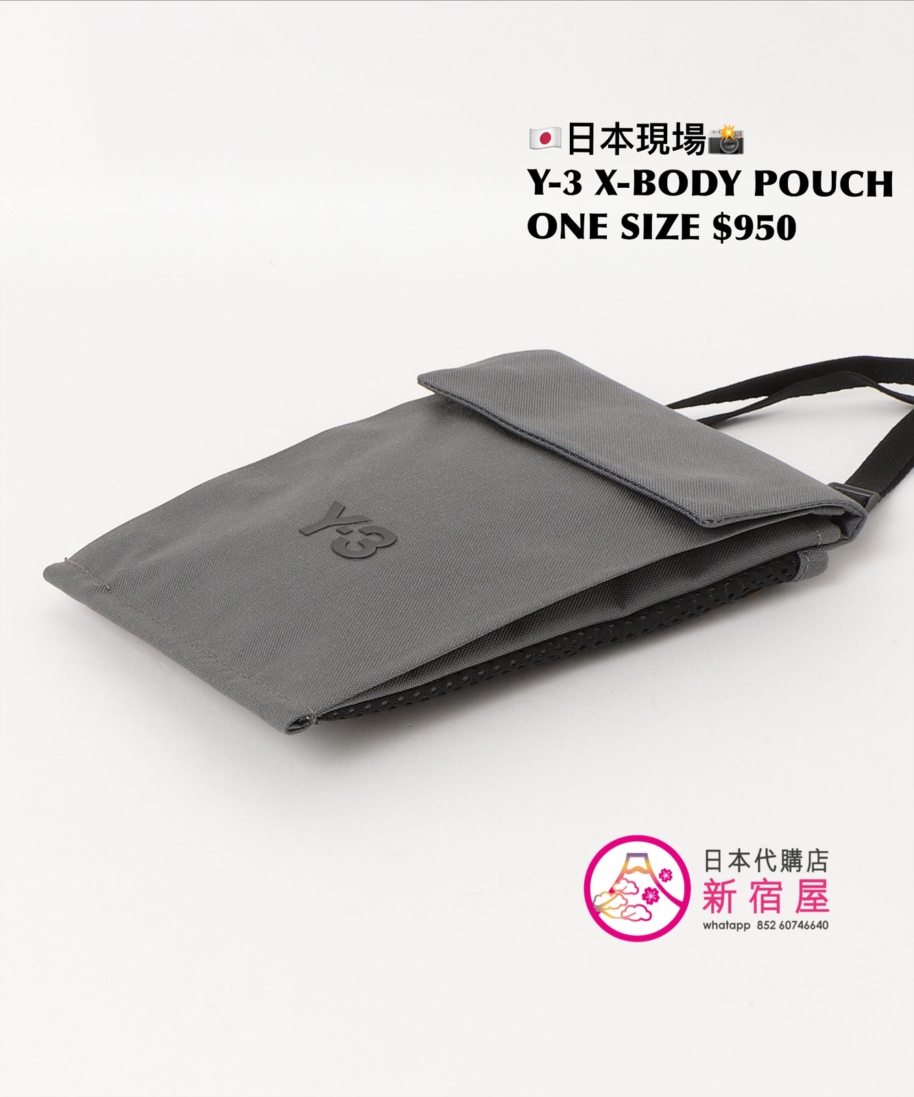 Y-3 X-BODY POUCH 13.5x19.5cm,GRAY,$950
