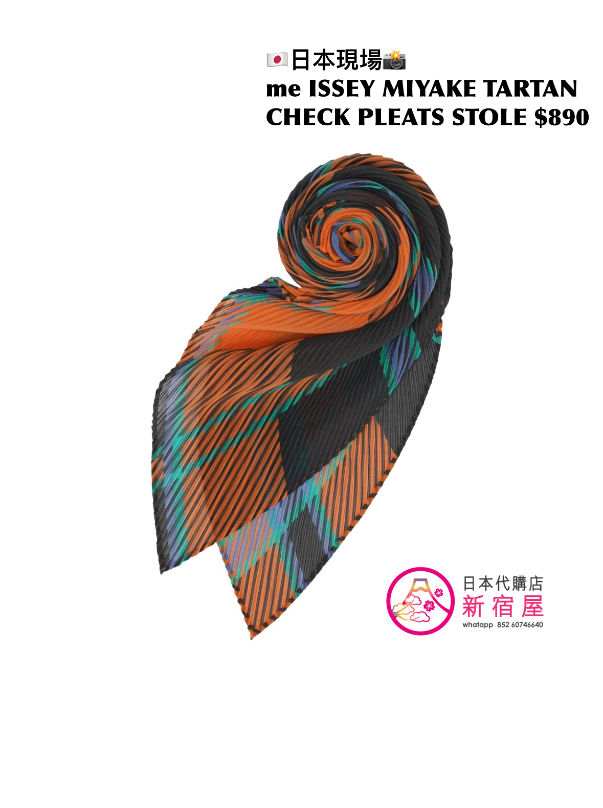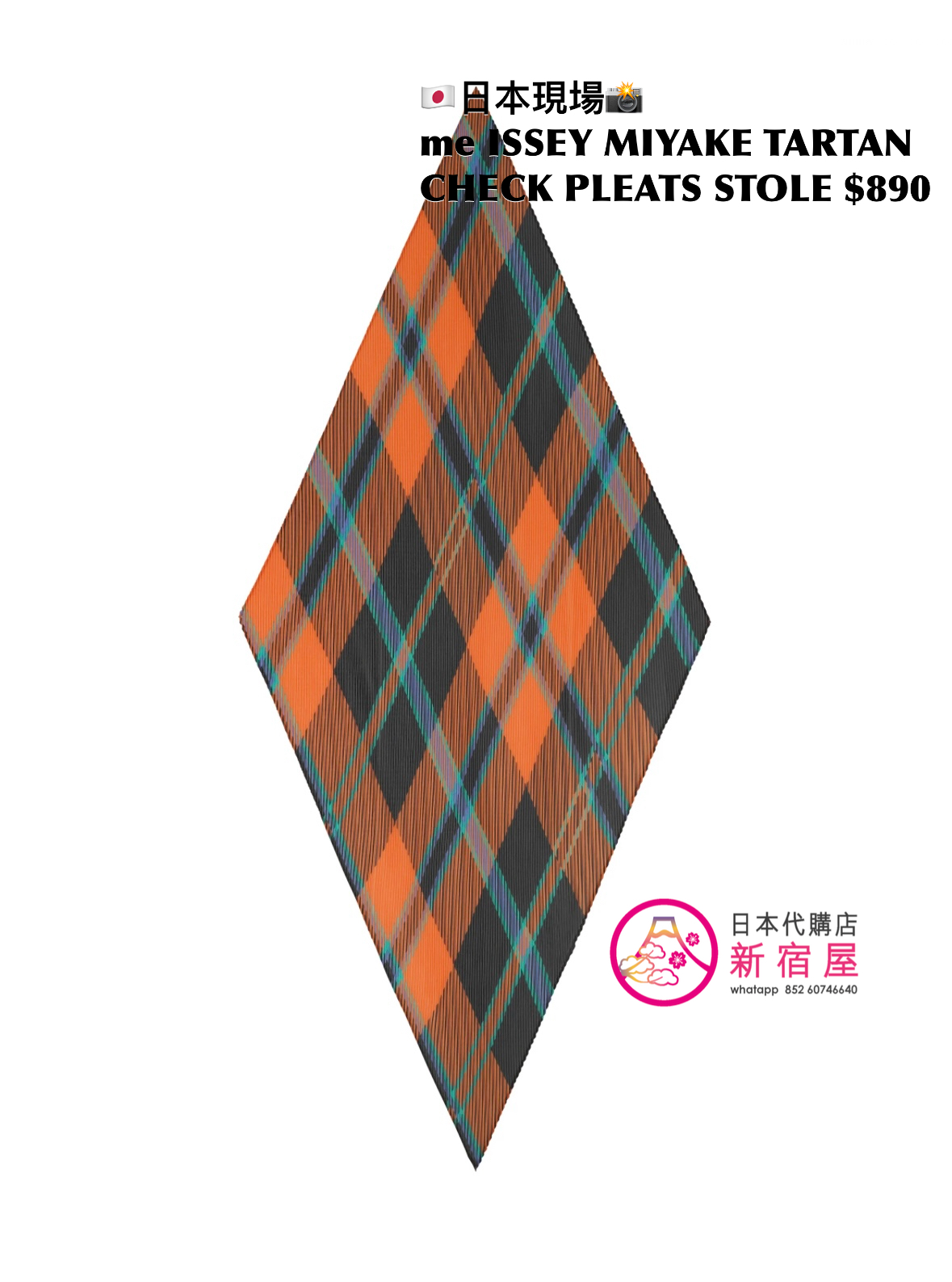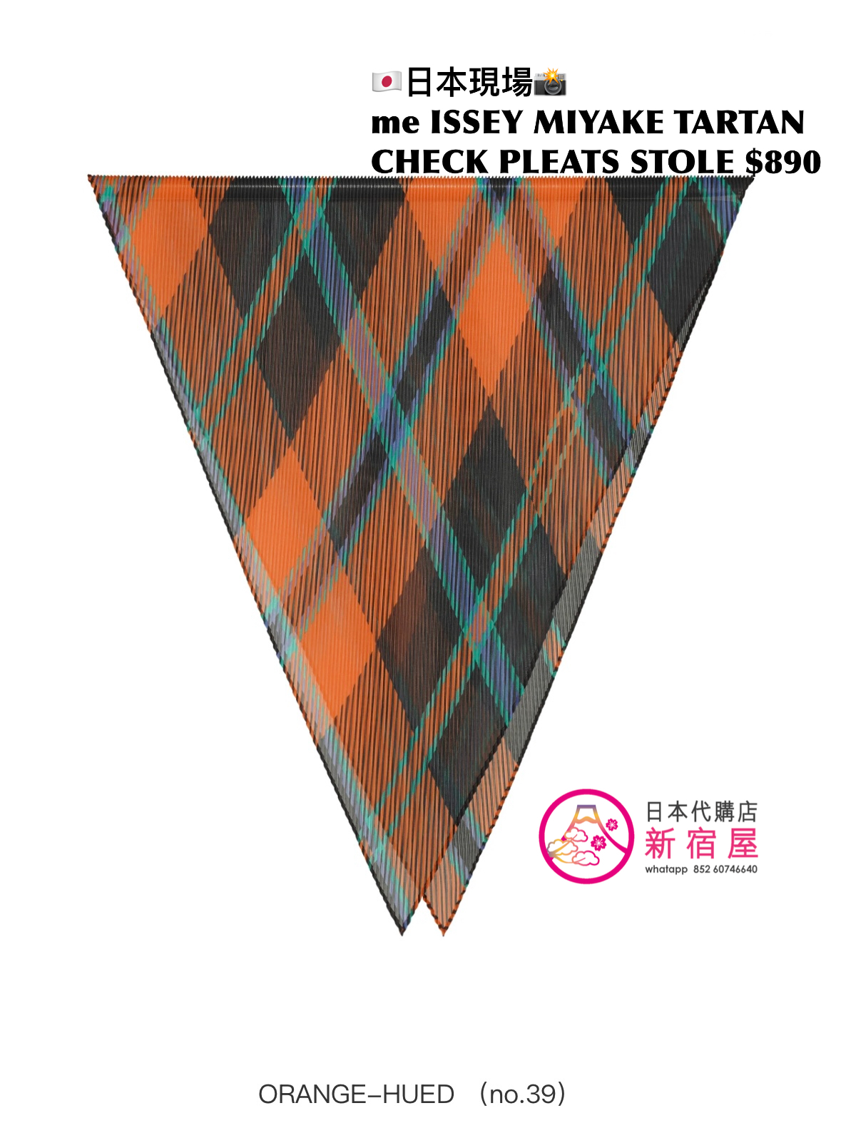 me ISSEY MIYAKE TARTAN CHECK PLEATS STOLE 140x70cm,ORANGE/ TURQUOISE / VIOLET-HUED,$890