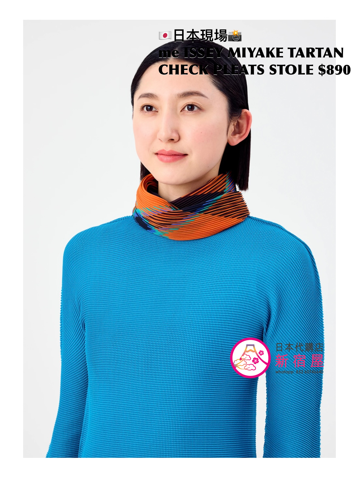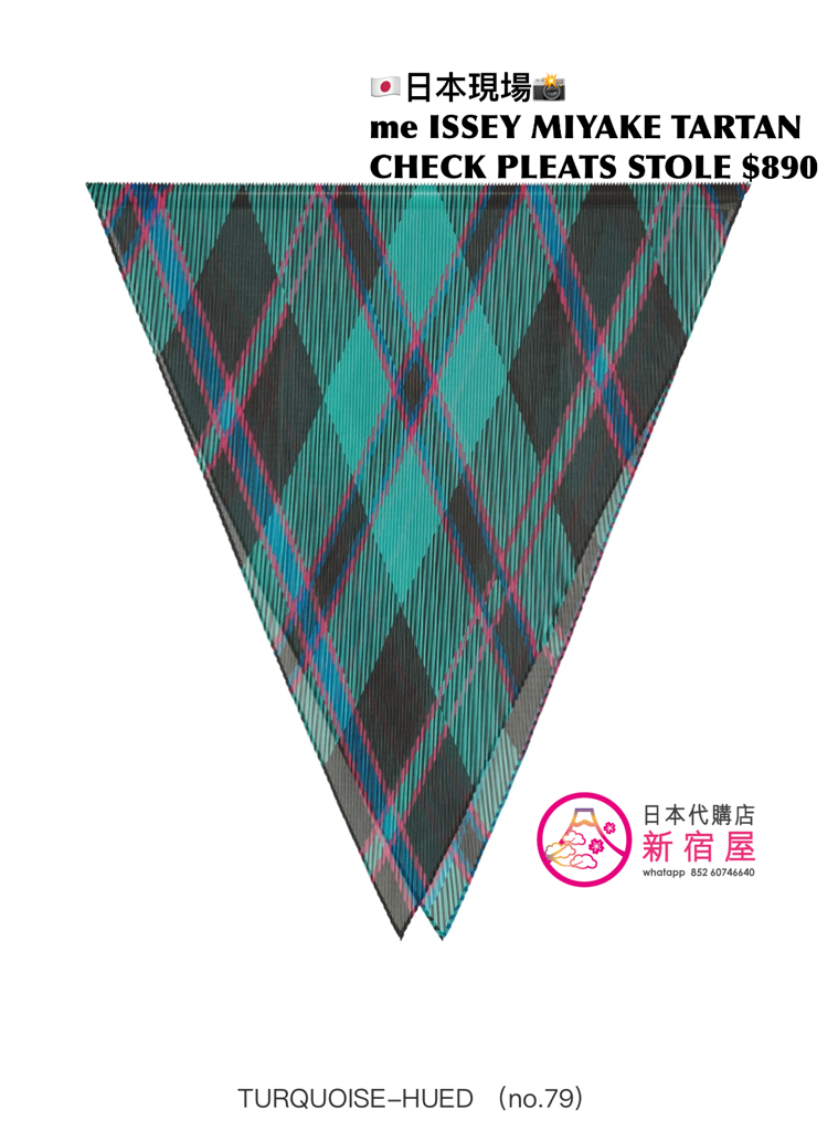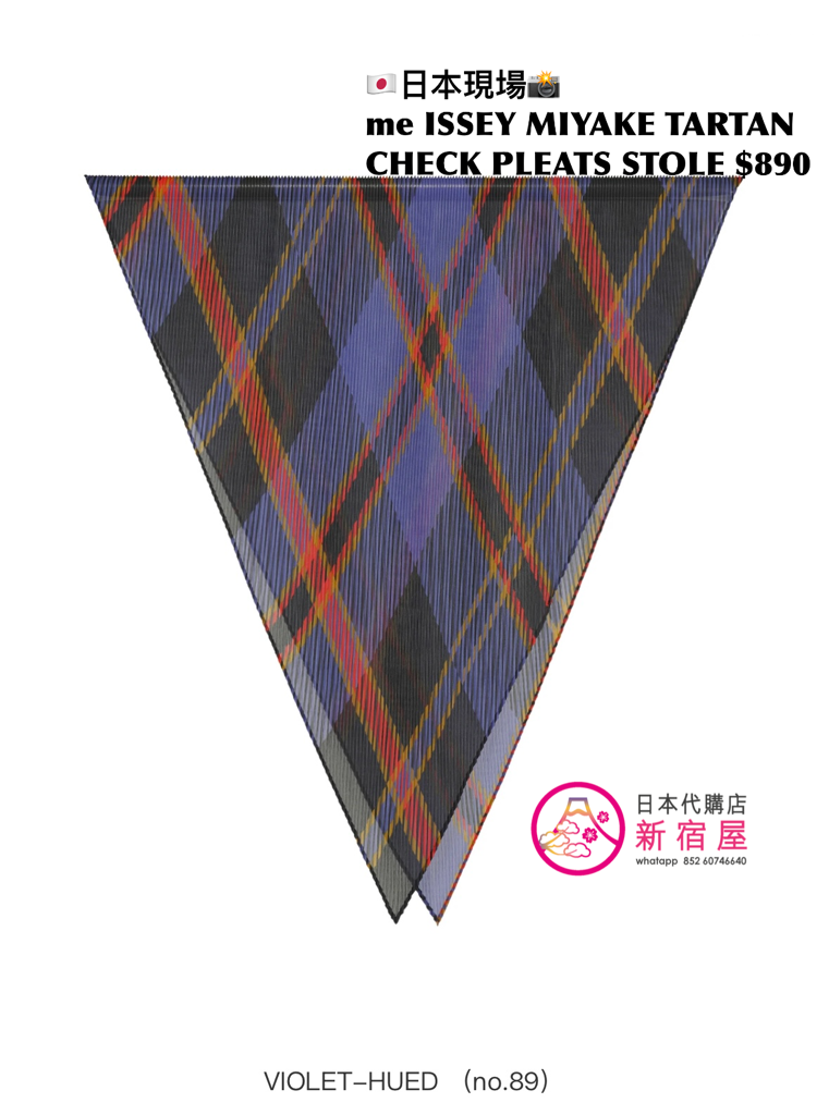 me ISSEY MIYAKE TARTAN CHECK PLEATS STOLE 140x70cm,ORANGE/ TURQUOISE / VIOLET-HUED,$890