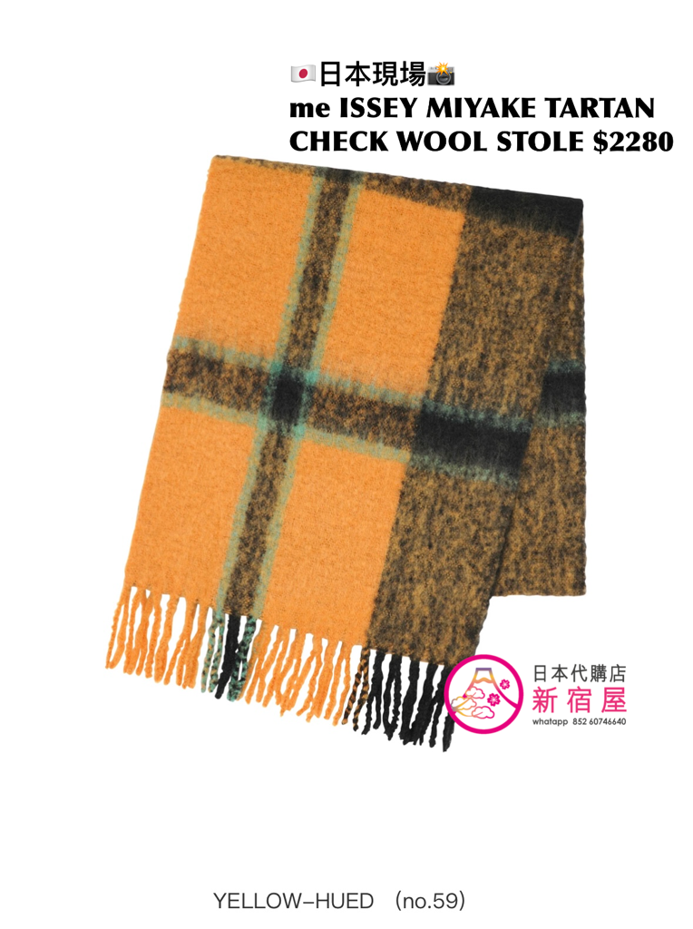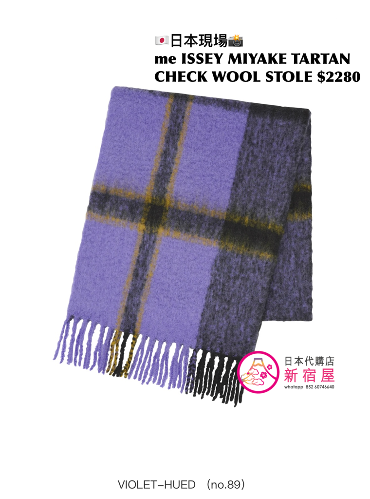me ISSEY MIYAKE TARTAN CHECK WOOL STOLE 200x42cm,YELLOW/ BLUE/ VIOLET-HUED,日本製,$2280