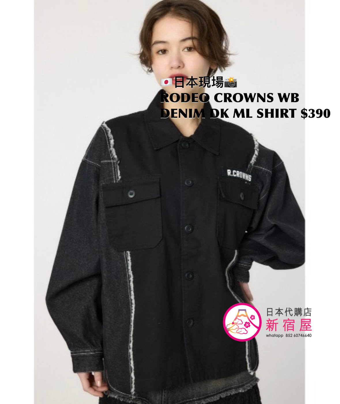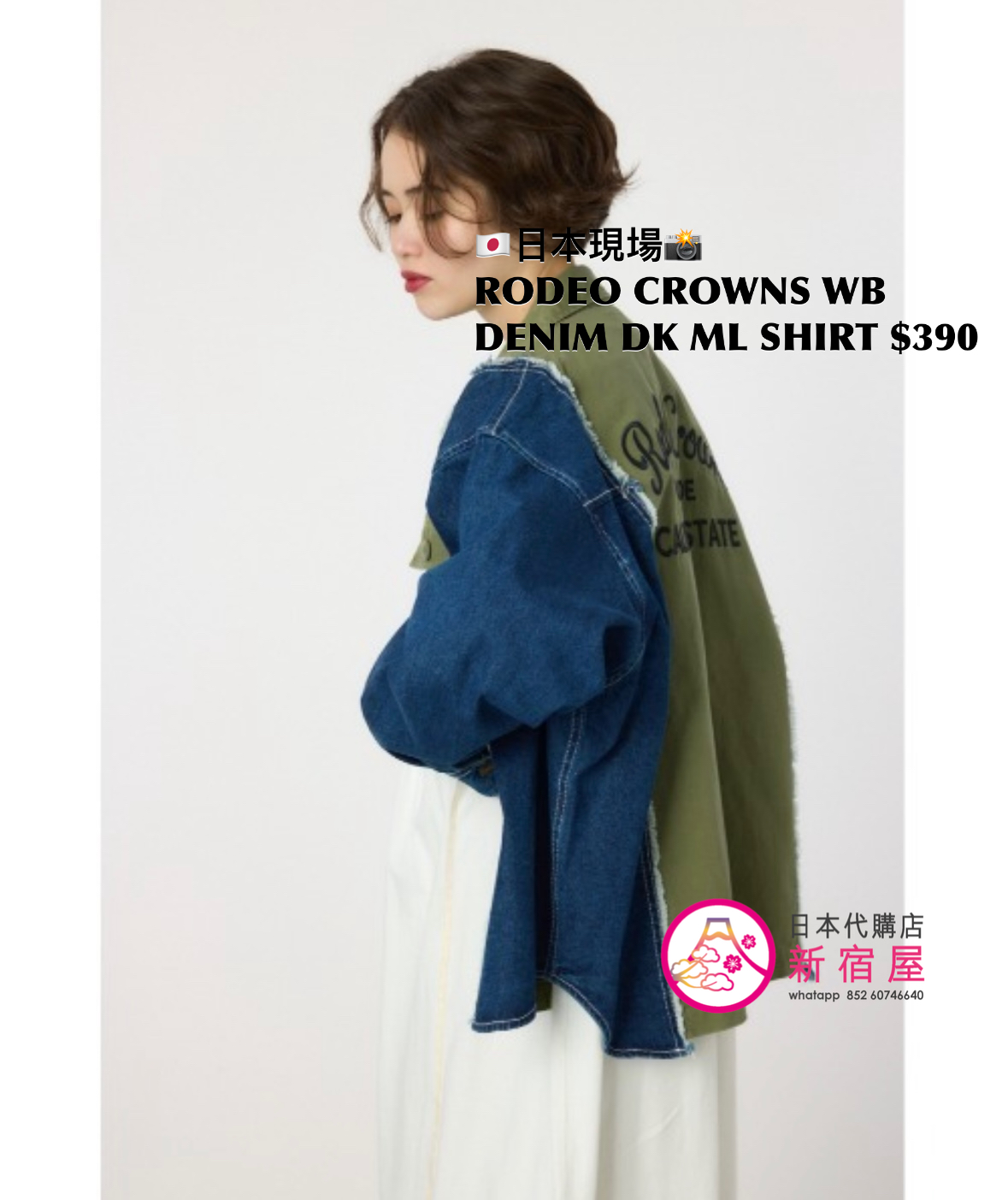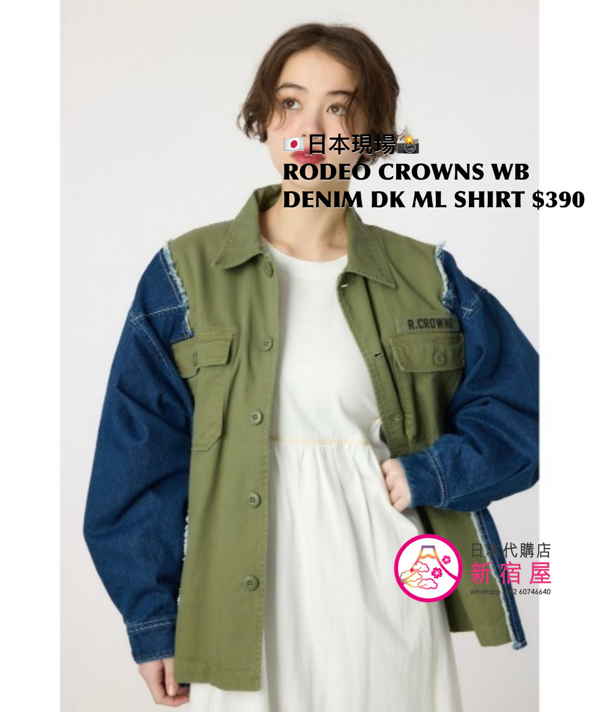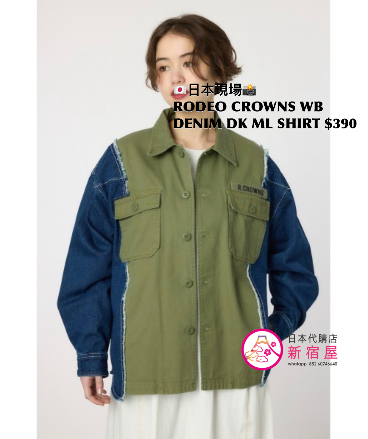 RODEO CROWNS WIDE BOWL DENIM DOCKING MILITARY LOOSE SHIRT FREE SIZE,KHAKI/ BLACK,$390 👚參考尺寸 FREE SIZE: 身幅 67 總丈 68cm
